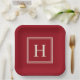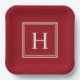 Assiettes En Carton Monogramme classique élégant sur canneberge rouge