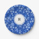 Assiettes En Carton Monogramme, Cobalt Blue Tropical Flowers Motif 7"