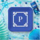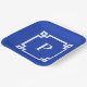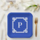 Bleu foncé et blanc de style grec style décoratif frontière carré et monogramme de serif moderne sur une plaque de papier carré. Customisez cette conception en éditant les couleurs dans l'arrière - plan, l'image graphique de conception géométrique et le texte monogramme moderne. Modifiez le style, la taille ou utilisez votre couleur préférée. Associez cette teinte de bleu branchée à la célébration de l'anniversaire de votre fils.