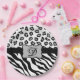 Jetez une soirée élégante et sophistiquée avec ces plaques en papier noir, blanc et gris avec votre initiale monogramme. Les rayures zébrées et les peaux de léopard ou de guépard pour le design graphique sont l'une des tendances artistiques et design les plus chaudes, et sont extrêmement populaires de la mode à la décoration maison. Ce noir et blanc tendance avec zèbre gris ou gris et motif empreinte de léopard est disponible en plusieurs combinaisons de couleurs. Un emblème gris crée une zone de personnalisation avec votre monogramme. Ceci est entièrement personnalisable. Amusez-vous avec une fête ou un événement coordonné.