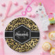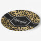 Plaque en or et en noir empreinte de léopard avec un nom personnalisé et modèle monogramme. Un motif poster de animal de safari mignon et branché, arrière - plan surmonté d'un petit morceau de personnalisation.