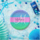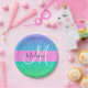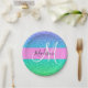 La parties scintillant de sirène bleu, vert, aqua et turquoise scintille le nom monogramme dégradé et la plaque papier initiale. Votre nom personnalisé et votre monogramme sont écrits dans un élégant script écrit à la main avec un arrière - plan rose.