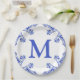 Assiettes En Carton Monogramme en tuiles florales bleues et blanches