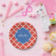 Plaques en papier motif marocain orange-rouge tendance avec un badge bleu que vous pouvez personnaliser en ajoutant votre nom et monogramme initial à. Il fait partie de la collection Cherry Tomato and Palace Blue Spring Quatrefoil Collection