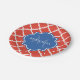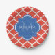 Assiettes En Carton Monogramme et nom bleu Quatrefoil rouge tendance