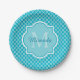 Ajoutez un vibe moderne sophistiqué à votre style de partie avec des ces turquoise à la mode d'aqua et plaques à papier de motif blanc de quatrefoil avec un monogramme encadré élégant. Personnalisez cette conception élégante en ajoutant votre initiale nommée et décorée d'un monogramme.