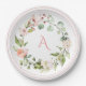 Assiettes En Carton Monogramme floral rose pâle Mariage élégant