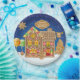 Créez votre propre design festif de Noël avec ce collage avec une maison en pain d'épices colorée, décorée de sucre de canne, de haricots de gelée, de bonbons de boutons, de cloches dorées et de feuilles de brin. Les biscuits en pain d'épice et le sapin de Noël, ainsi que les grands palmiers sur les pots de cupcake ajoutent une douceur supplémentaire. arrière - plan de nuit bleu avec chute de neige et flocons de neige. Une plaque de cuisson en pain d'épices assortie et un drapeau de maison complètent l'aspect. Idéal pour tous types de fêtes de Noël et d'événements de vacances. Remplacez l'exemple de monogrammes et de texte par le vôtre pour une conception personnalisée.