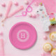 Assiettes En Carton Monogramme initial du cadre de ligne clé grecque r