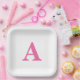 Assiettes En Carton Monogramme Initial Élégant Nom Personnalisé Rose B