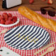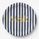 Assiettes En Carton Monogramme Marine Bleu rayures Anniversaire rayé