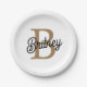 Assiettes En Carton Monogramme moderne élégant Nom Black Gold Script