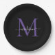 Assiettes En Carton Monogramme Moderne Élégant Violet Pourpre Script