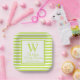 Assiettes En Carton Monogramme Moderne Lime Green Stripes Retrouvaille