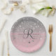 Assiettes En Carton Monogramme Nom rose Gris argenté étoiles Mariage