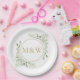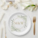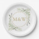 Assiettes En Carton Monogramme Or Initiales Aquarelle Verdure Foliage