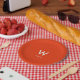 Assiettes En Carton Monogramme Rouge Atténué Fête Personnalisée