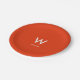 Assiettes en papier pour fête personnalisées avec un fond rouge atténué, un grand monogramme centré et un nom associé. Typographie minimaliste propre et simple. Entièrement personnalisable.