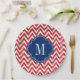 Assiettes En Carton Monogramme rouge blanc et bleu Chevron
