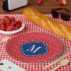 Plaques papier imprimées sur mesure avec un motif à points polka mignon et votre monogramme personnalisé ou autre texte dans un cadre élégant de quatrefoil. Cliquez sur Customiser pour modifier les polices de texte et les couleurs ou ajouter vos propres images pour créer une image unique d'un design unique. Parfait pour votre prochain pique-nique en famille ou 4 juillet barbecue !