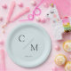 Plaque de papier de mariage moderne, simple, élégante et propre au client, bleu clair, gris. Modifiez votre produit en quelques minutes. Vous pouvez modifier la police/taille/couleur et la position en utilisant "personnaliser davantage".