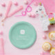 Plats en bon état chinés simples et chics de Livre vert. Cette conception vert clair moderne et girly peut être personnalisée en ajoutant les initiales de nom et de monogramme de la femme sophistiquée.