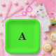 Assiettes En Carton Monogramme vert néon blanc initial Cute personnali