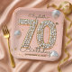 Un chef-d'oeuvre pour un jalon. Cette plaque d'anniversaire "70e" présente une mosaïque d'élégantes perles d'or et de blanc, dressée contre un arrière - plan rose et moelleux avec ballons flottants et confettis. Le centre parfait pour une célébration sophistiquée du 70e anniversaire.