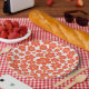 Assiettes En Carton Motif à fleurs - Orange et Blanc