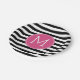 Assiettes En Carton Motif à rayures noir et blanc Monogramme rose chau