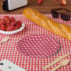 Assiettes En Carton Motif à vagues Art déco - rouge et fuchsia
