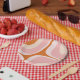 Assiettes En Carton Motif Abstrait rétro Groove rose et orange