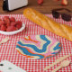 Moderne Retro Liquid Swirl Colorful Abstrait Motif Carré rose Bleu Rouge Orange Beige. Contemporain pop 60s 90s Y2K boho esthétique; un peu trippy et psychédélique. Par Kierkegaard Design Studio.