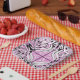 Assiettes En Carton Motif Abstrait rose noir blanc