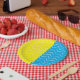 Assiettes En Carton Motif couleur bleu jaune blanc Chevron