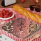 Un motif d'art joli et drôle dessiné à la main sur un arrière - plan rouge.