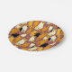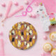 Plaques de papier modelées dans un motif ludique de chats stylisés dans des tons chauds de gingembre, crème, noir et marron sur un arrière - plan marron caramel. Chaque chat a sa propre expression et ses marques mignonnes, avec de petits empreintes de pattes éparpillés partout.