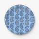 Assiettes En Carton Motif Paisley, bleu ciel, marine et blanc