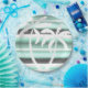 Beau palmier blanc contemporain sur vert menthe clair pastel et gris pâle motif aquarelle rayée.