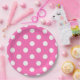Plaques de soirées papier avec un motif classique de pois blancs sur une couleur arrière - plan rose chaud. Vous pouvez modifier la couleur de l'arrière - plan à votre préférence et ajuster la taille du motif à votre préférence. Personnalisez ces plaques avec un nom ou un message spécial. C'est une façon amusante de célébrer pour tous ceux qui aiment les pois roses et rétro !