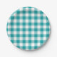 Assiettes En Carton Motif Turquoise et Blanc En vichy