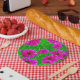 Assiettes En Carton Motif vert et rose vif