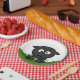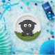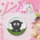 Dessin autour de mouton avec fleur dans sa bouche sur les assiettes de fête de l'enfant.