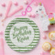 Célébrez votre anniversaire avec ces amusantes plaques de papier rayé vert et blanc. La motif géométrique tendance est un motif à rayures simples vert et blanc avec confettis. Il y a un cercle blanc au centre pour votre texte et un modèle texte pour que vous puissiez facilement le changer en vos propres mots, nom ou événement. Ce design convient à toutes les occasions, y compris les fêtes d'anniversaire, les douches, les anniversaires, les diplômes, etc. Il suffit de modifier le texte pour qu'il corresponde à l'événement.