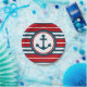 Design nautique avec décoration d'ancre en forme ronde sur arrière - plan rayé rouge, bleu et blanc