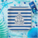 Make your party table stand out with these classic maritime-themed paper plates. The design features a bold background of alternating navy blue and white horizontal stripes that cover the entire square surface. Centered in the middle is a large, detailed anchor graphic with a flowing "Birthday" banner and two small sailboats gliding over ocean waves. This clean and coordinated look brings a fun, seafaring vibe to any birthday meal, making it easy to match with your other ocean-inspired decorations.