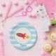 Assiettes En Carton Navire d'espace de roquette rouge; Bleu clair