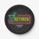 Panneau lumineux de marquise de néon avec martini graphique sur mur de brique urbaine pour la fête de retraite