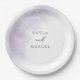 Ces plaques de papier-gâteau violet lavé à l'aquarelle sont parfaites pour un mariage moderne. Le design simple et classique présente une touche d'eau violette pastel lavande avec un style minimaliste et élégant. Ces assiettes en papier jetables sont parfaites pour le gâteau ou la table de desserts. Personnalisez-les avec les noms de la mariée et du marié.