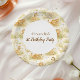 A soft and charming safari-themed design featuring gentle watercolor animals surrounded by delicate wildflowers and botanical greenery. Sweet lions, giraffes, elephants, and zebras create a whimsical storybook scene in warm neutral tones of beige, cream, and soft sage. The elegant arch layout and botanical details give this design a timeless and refined look, perfect for celebrating a little one’s special first birthday.